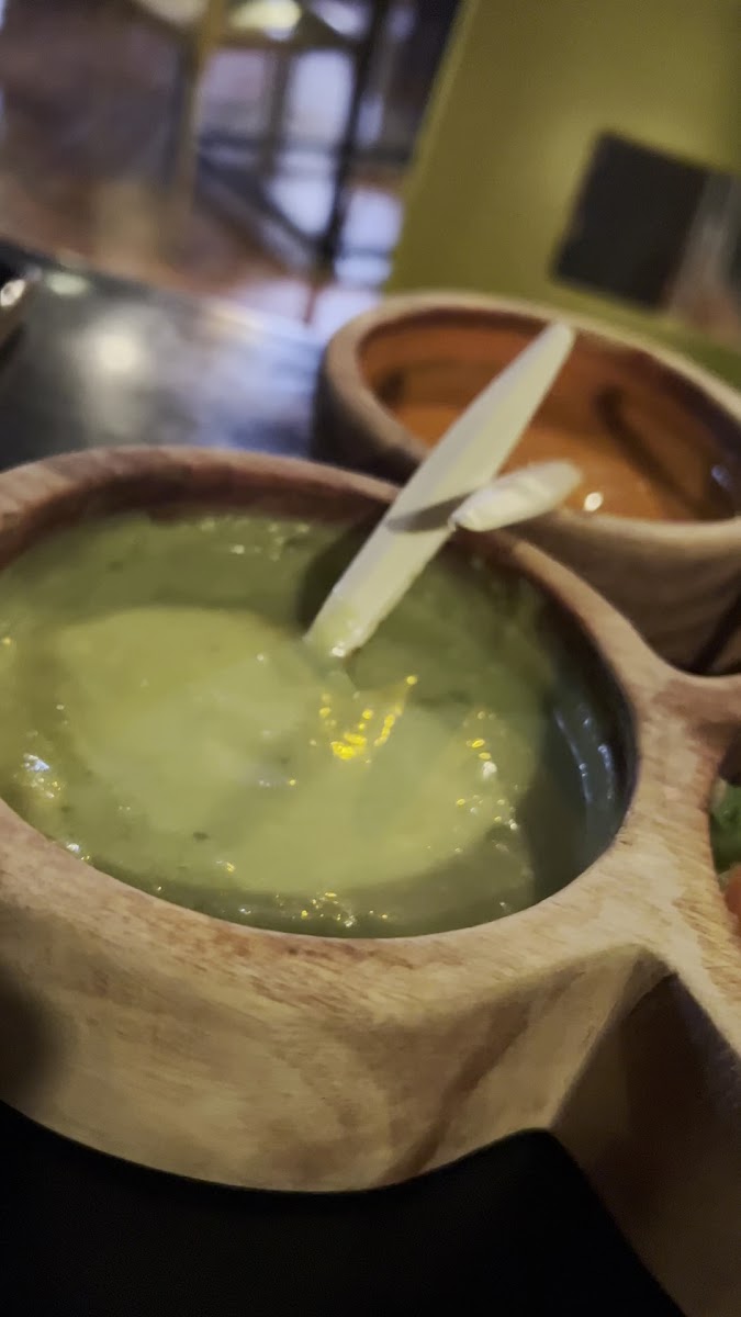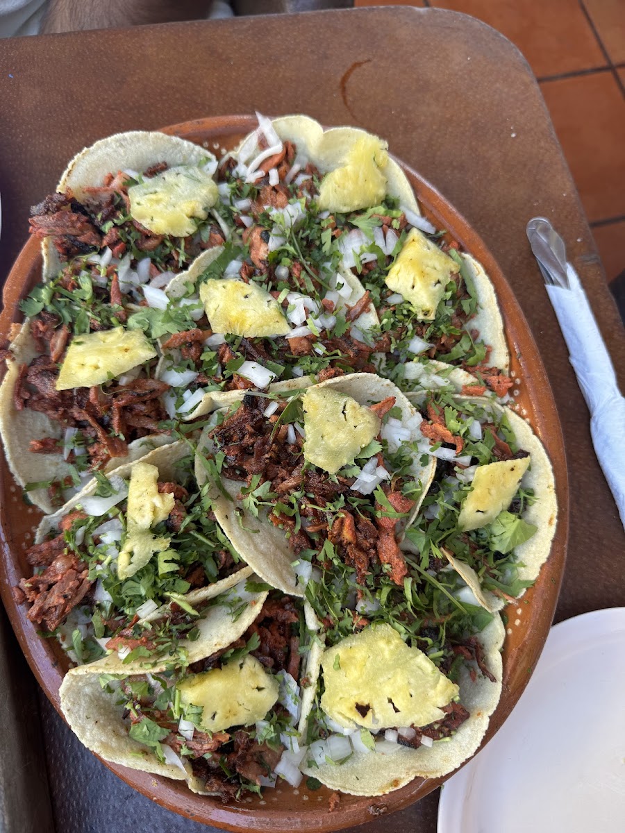 The tacos were great! I am a big fan of the pork tacos. The pork tacos had a little bit of pico, pork, and a small slice of pineapple. That pineapple slice sweetened them up just a little bit, and the flavor was amazing. They served complimentary chips and salsa. The salsa verde was delicious and easily my favorite! They have a long list of alcoholic beverages and “mocktails” for kids or adults looking for an alternative. They had live music and it was great, but the volume was a bit too loud for me. I’m not older in age, nor do I have sensitive ears, but we were seated right next to a speaker. The restaurant has two floors- one main floor where the kitchen and bathrooms are, and an upstair floor for more seating options. The inside is colorful and vibrant, full of cultural significance. I would definitely go back and would recommend this restaurant to a friend. Prices were very reasonable!